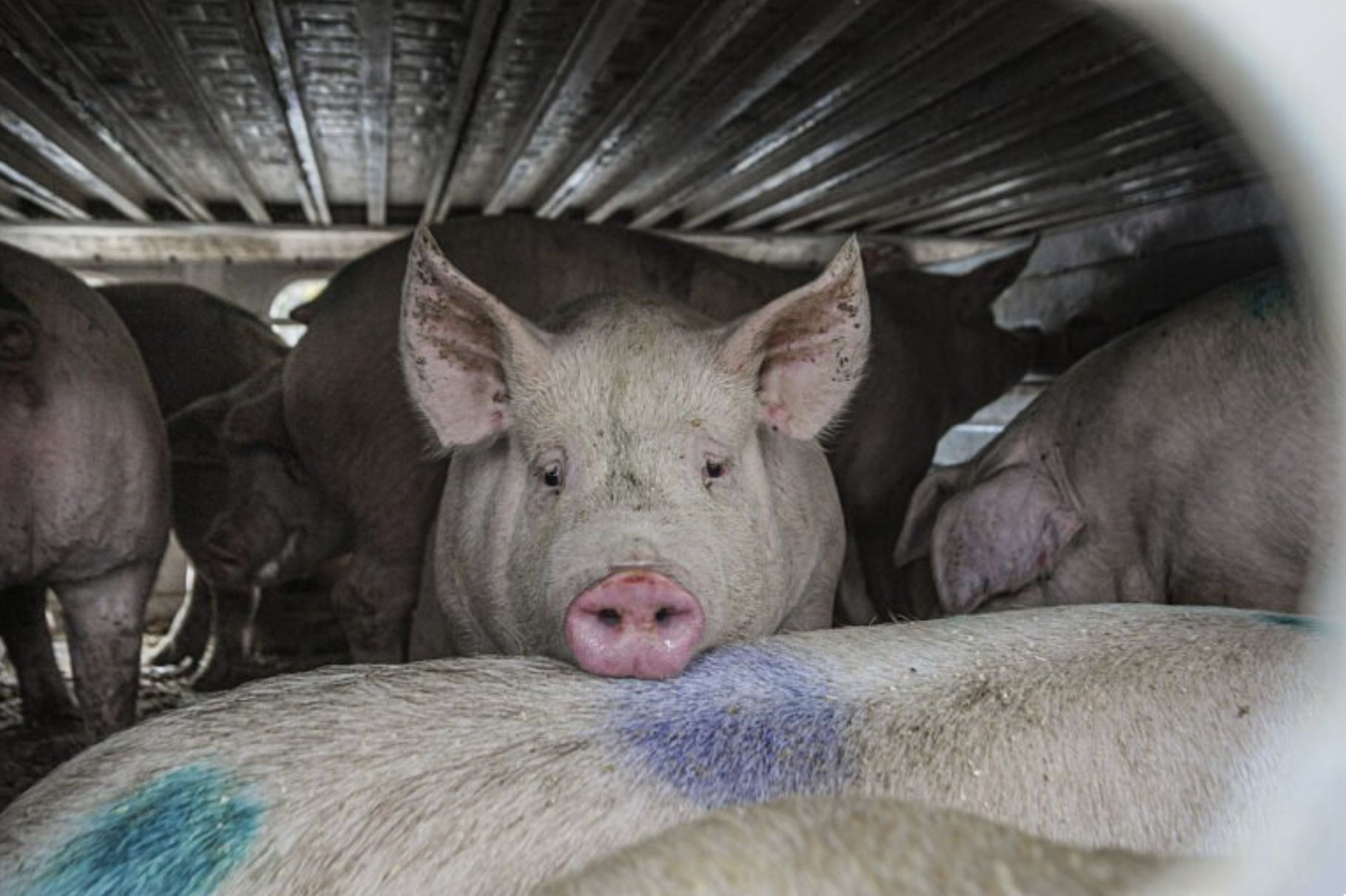 Pigs in a crowded truck. © Jo-Anne McArthur / We Animals Media