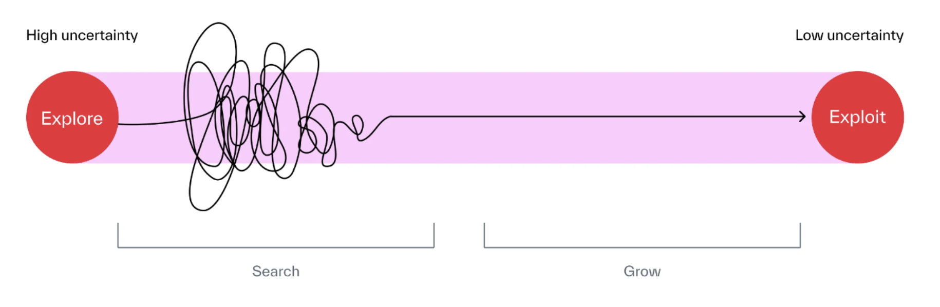 This is especially true early in your career or early in a project. In the early phases, exploration of your options has more greater value than early committing. This is because when you have lots of time left in front of you, it’s worth spending more time up front to identify better opportunities. If you’re going to be working on a project for the next two years, it’s probably worth a few weeks up front exploring all of your options before committing to one (maybe even a few months).
